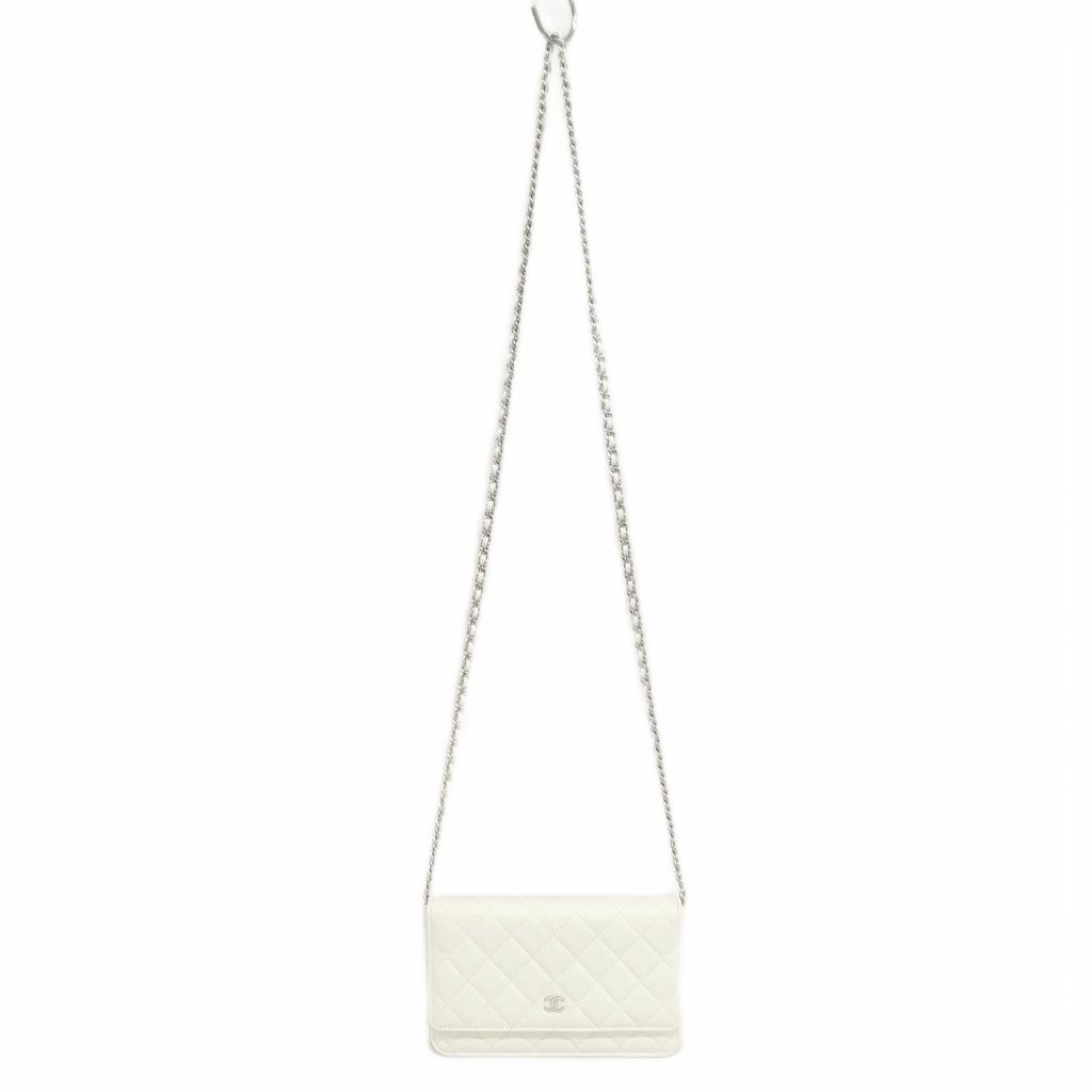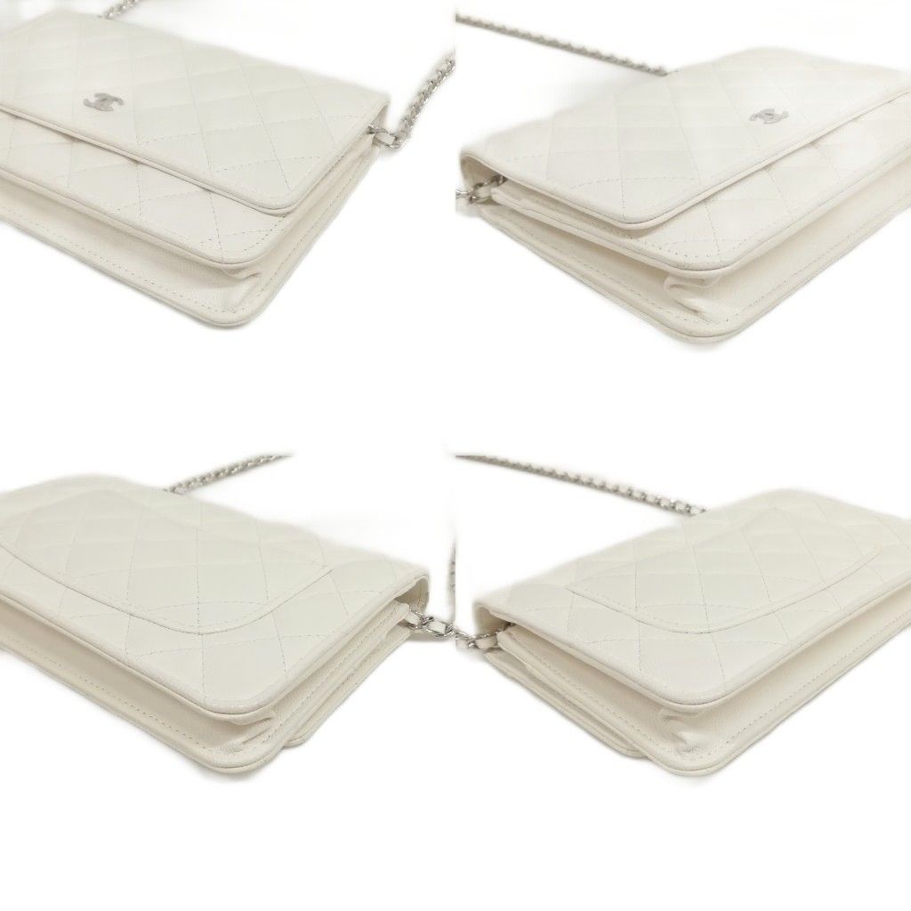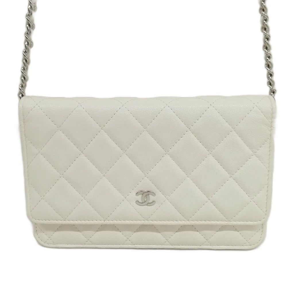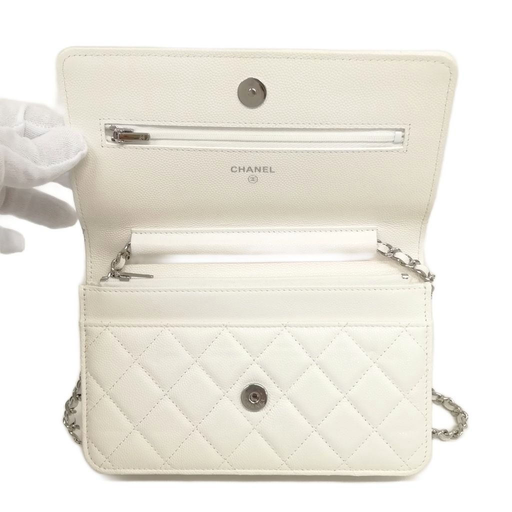 シャネル CHANEL 21K AP0250 キャビアスキン マトラッセ チェーンウォレット ショルダーバッグ シルバー金具 ホワイト