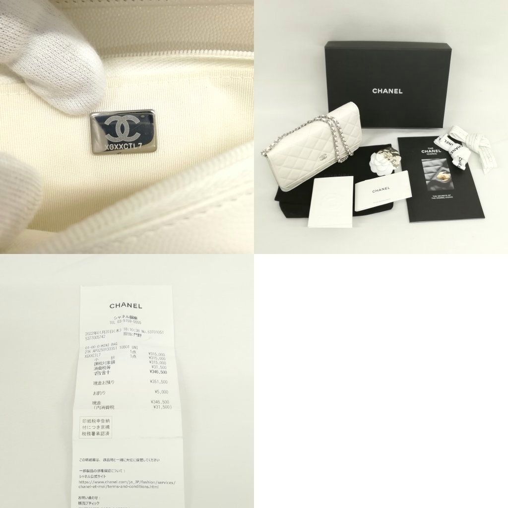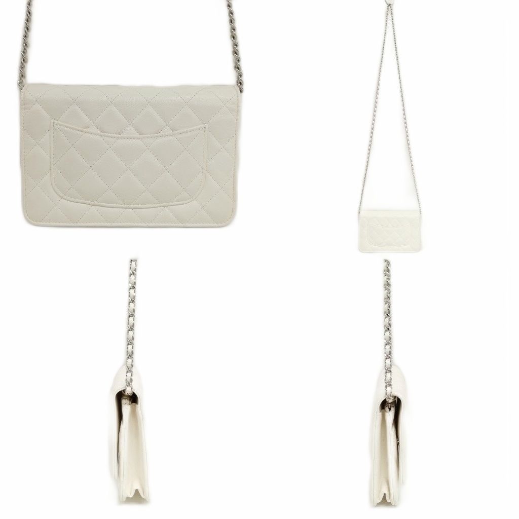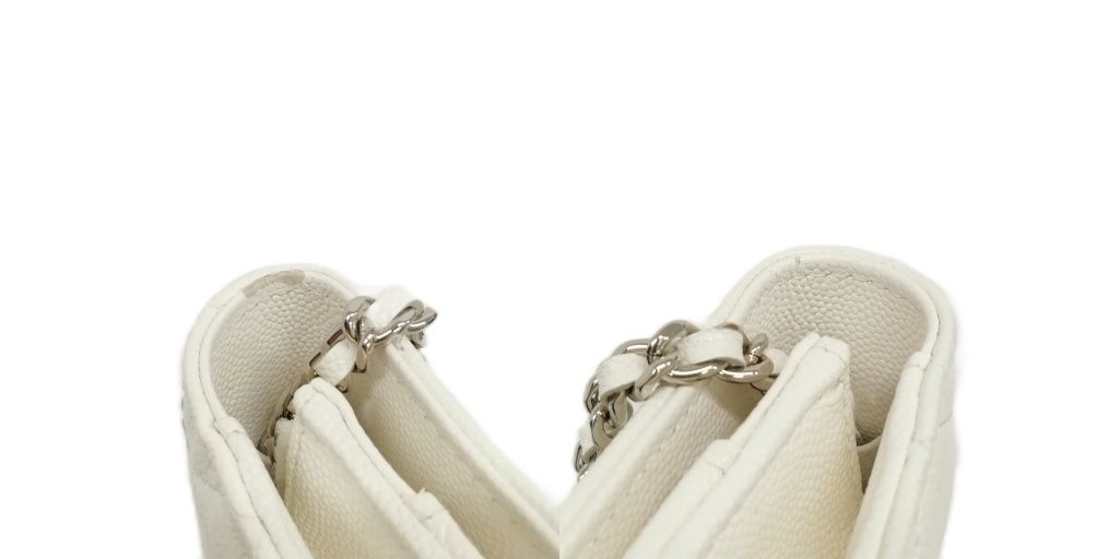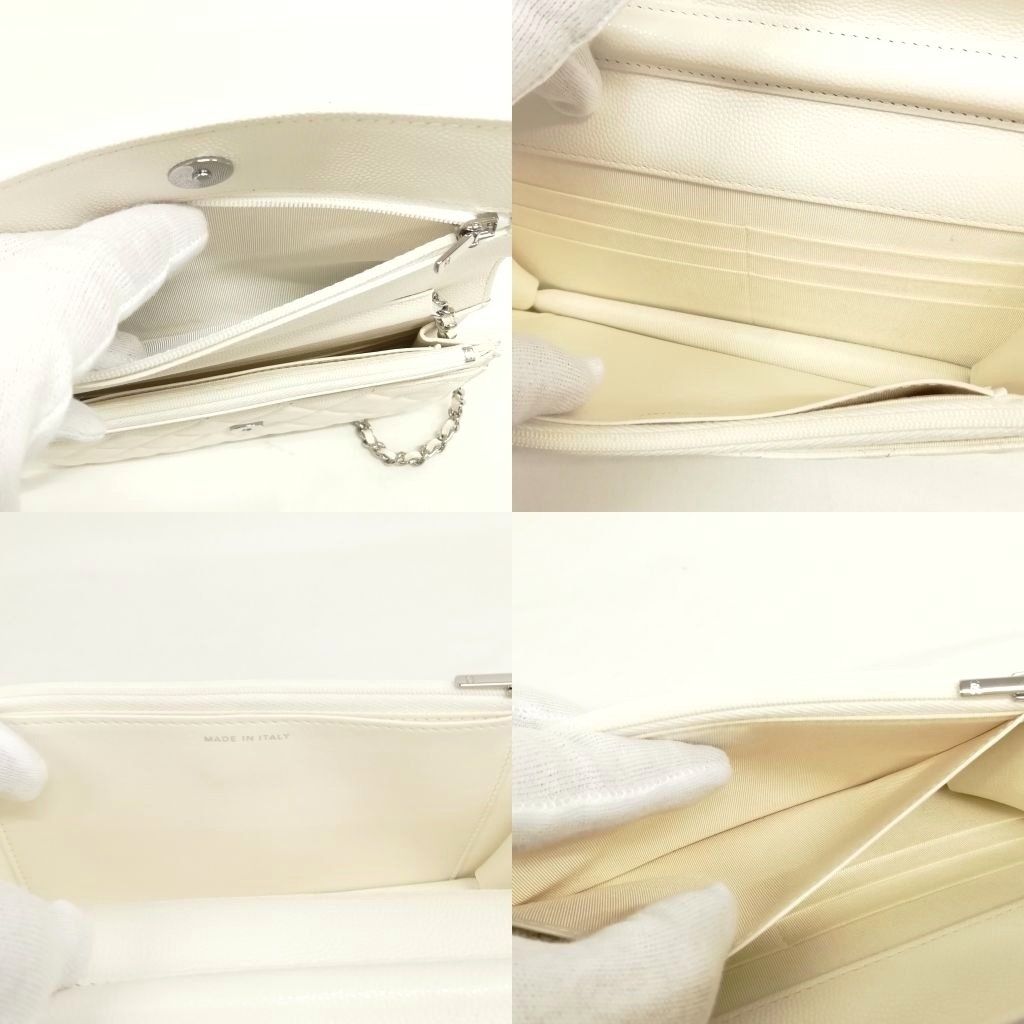シャネル CHANEL 21K AP0250 キャビアスキン マトラッセ チェーンウォレット ショルダーバッグ シルバー金具 ホワイト