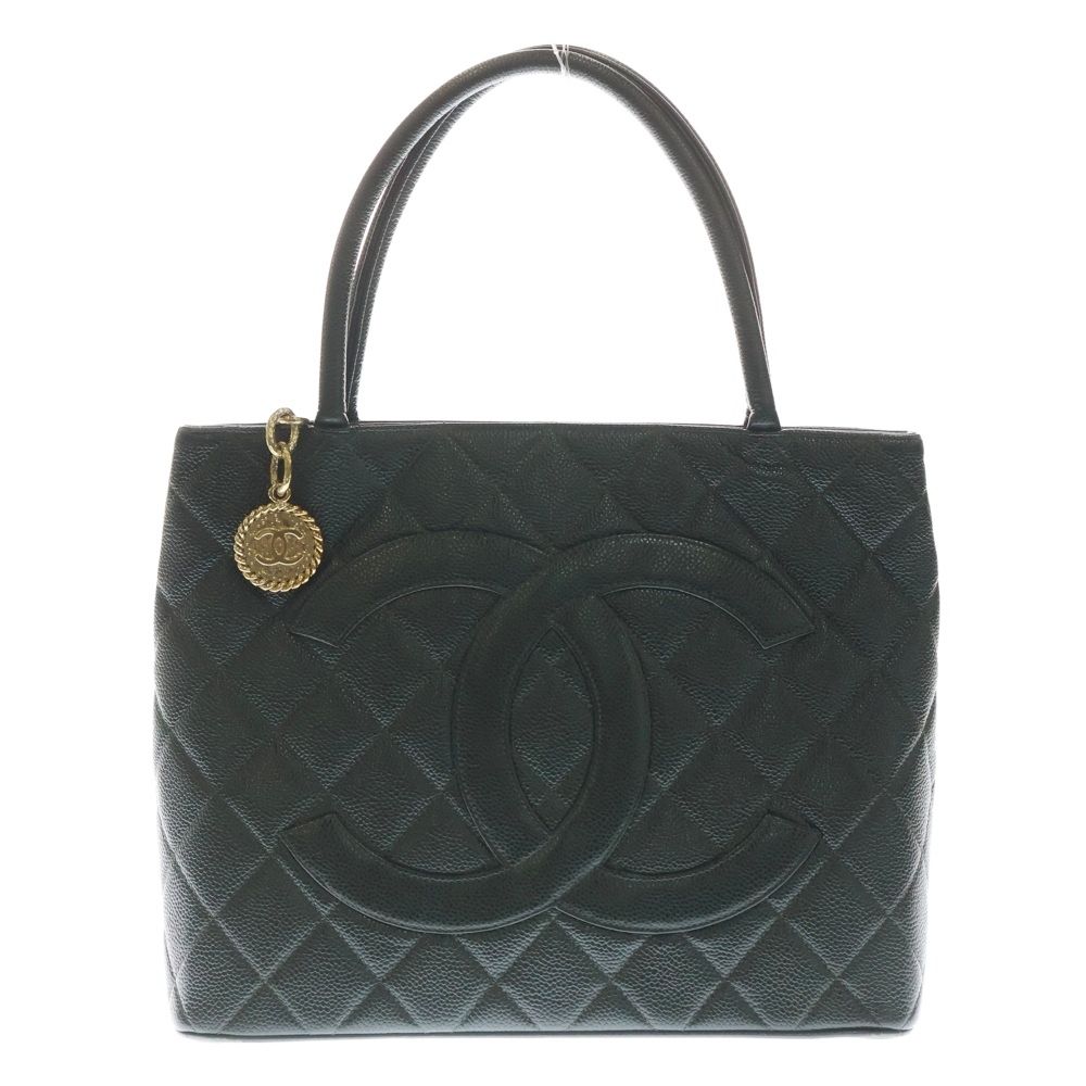 CHANEL (シャネル) ココマーク 復刻トート キャビアスキン レザーハンドバッグ グリーン GD金具