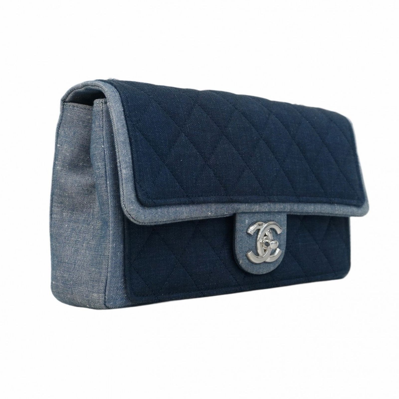 Chanel Shoulder Bag Matelasse W Chain Denim Navy Womens