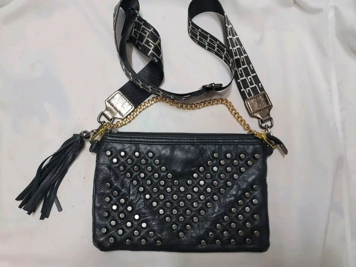 Ssamzie Black Studded Tote Bag Crossbody Bag