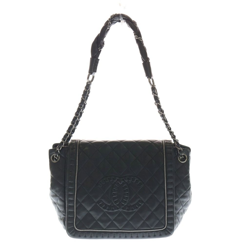 CHANEL (シャネル) ココマーク マトラッセ Sフラップ ショルダーバッグ ハンドバッグ チェーンバッグ ブラック ラムスキン シルバー金具